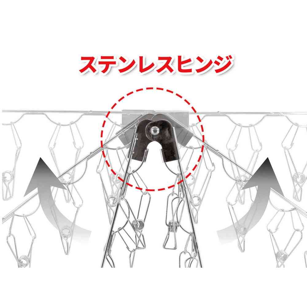 ●本商品は金属製のため、プラスチック製ハンガーに比べ硬く重たいです。風などであおられても窓ガラスや壁に当たらない場所でご使用ください。また、不用意な落下によるケガや折りたたむ際のケガに充分ご注意ください。 ●使用前に各部を点検し、万一破損等の異常がある場合は使用しないでください。 ●フレームの外側だけに洗濯物を干すと、商品が折りたたんでしまうことがあるので、洗濯物はバランスよく干してください。 ●思わぬ事故・ケガのおそれがあるので、洗濯物を干した状態での製品移動は避けてください。 ●折りたたむ際は、指などをはさまないよう充分ご注意ください。 ●炎天下では本体が熱くなるので、取扱いに注意してください。 ●屋外で使用する際、強風の時は室内に取り込んでください。 ●使用後は、室内または日光の当たらない所に保管してください。 ●本来の用途以外には、使用しないでください。 ●フックに付属のワッシャーは小さな部品なので、無くさないようご注意ください。また、お子様が誤って口に入れないよう充分ご注意ください。 ●ピンチや吊り金具がからむことがあります。破損の原因となるので、からんだ状態で無理に引っ張らないでください。 ●廃棄時は各自治体の定める方法に従って処理してください。