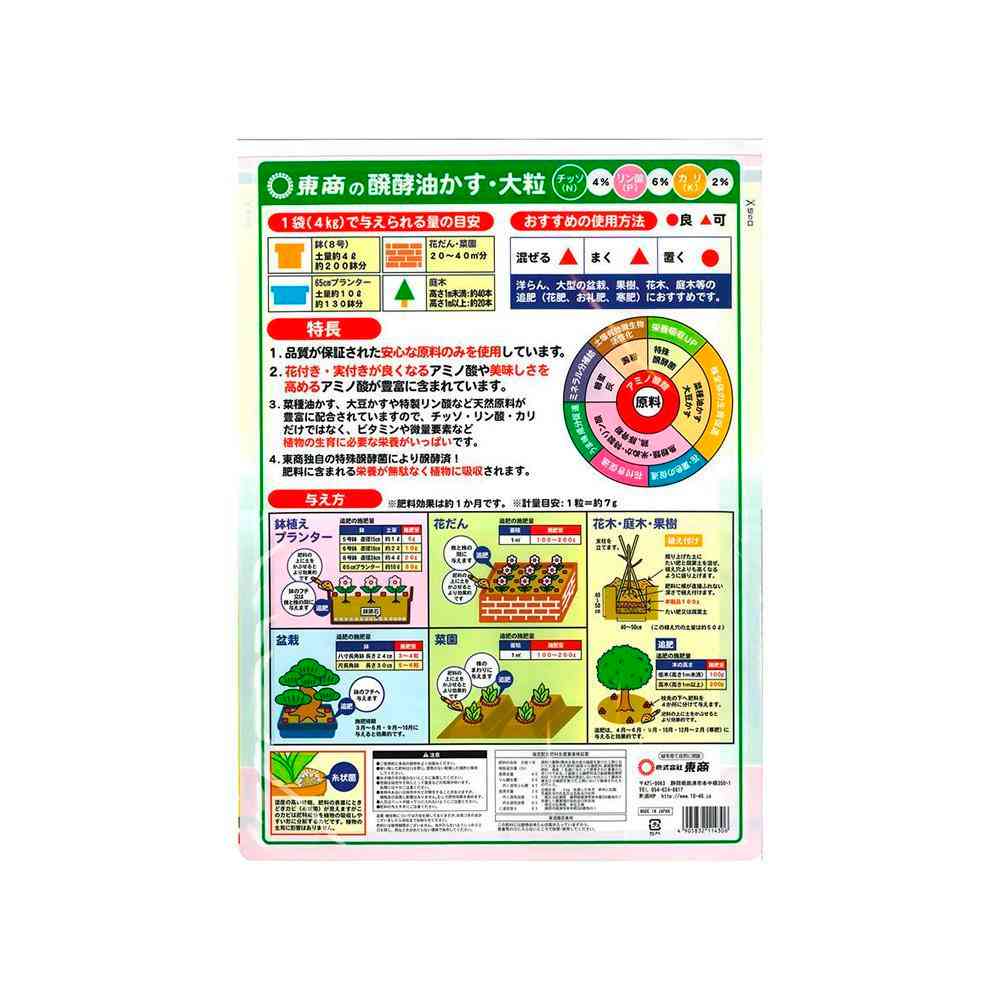 成育がゆるやかな植物への追肥、洋らん・盆栽・果樹など、大きな鉢物の追肥(花肥・お礼肥・寒肥)におすすめです。