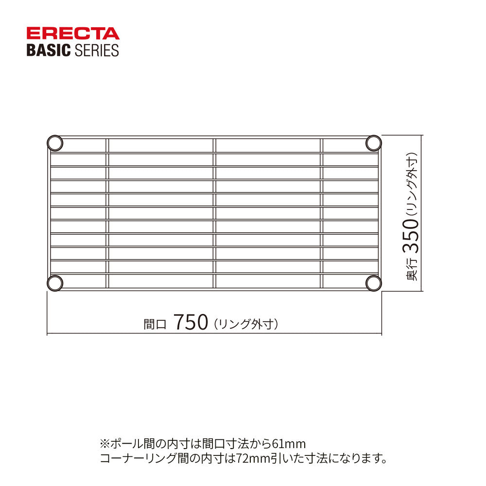 時代の変化にも揺るがないベーシックライン。高度な溶接技術により精度を高め、寸法安定性に優れます。 汎用性の高いパーツを用意し、万能型シェルフとして様々な用途に対応。棚1段あたり135kgの耐荷重。線材の切断面に面取り加工を施し、安全性に配慮。 間口1500mm、奥行450mm、600mmのワイヤーシェルフには補強用スネークが入ります。サビに強い仕上げ。クロームにはクリアコーティング仕上げを、ブラック・ホワイトにはエポキシコーティング仕上げ(粉体塗装)を施しているため、サビに強く衛生的です。【仕様】耐荷重:135kg/棚1段 垂直荷重(等分布)●互換性:同一サイズのユニット内で、下記の棚板との併用が可能です。・ベーシックシリーズ ウッドシェルフ・ベーシックシリーズ スライディングシェルフ/ 3 方クロスバー/アクリル板・ベーシックシリーズヴィンテージエディションスーパーシリーズ、ファーストシリーズ等、他のシリーズとの互換性はありません。