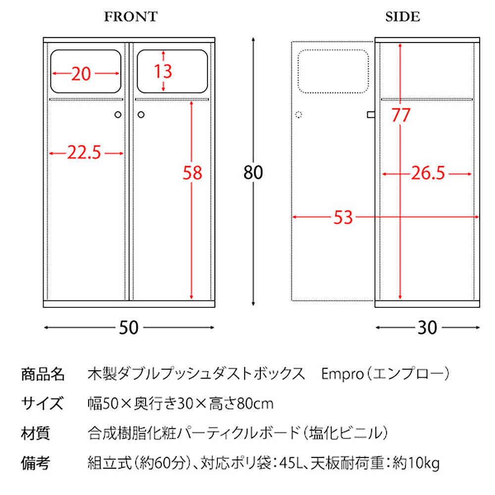 ニオイが漏れにくく押すだけで簡単に捨てられるプッシュ扉式。それぞれ容量45Lでたっぷり入るので大家族のご家庭でも快適。