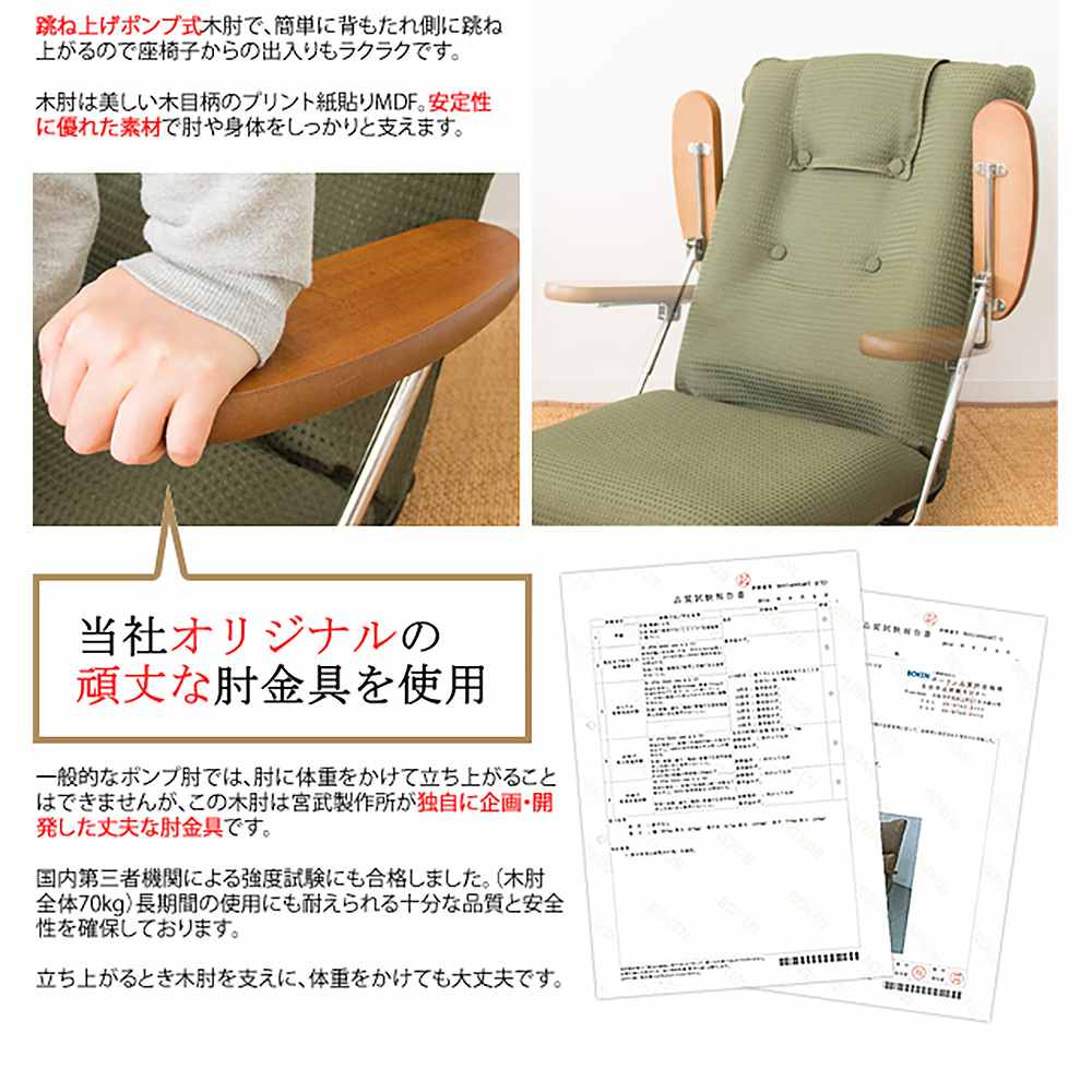 特製のオリジナルの肘金具を使用しているのでとても丈夫で、立ち座りに便利です。