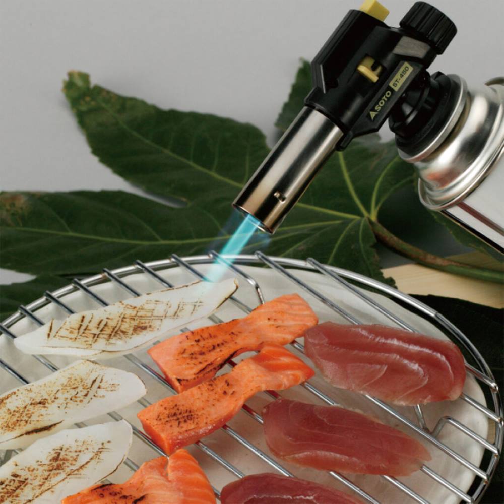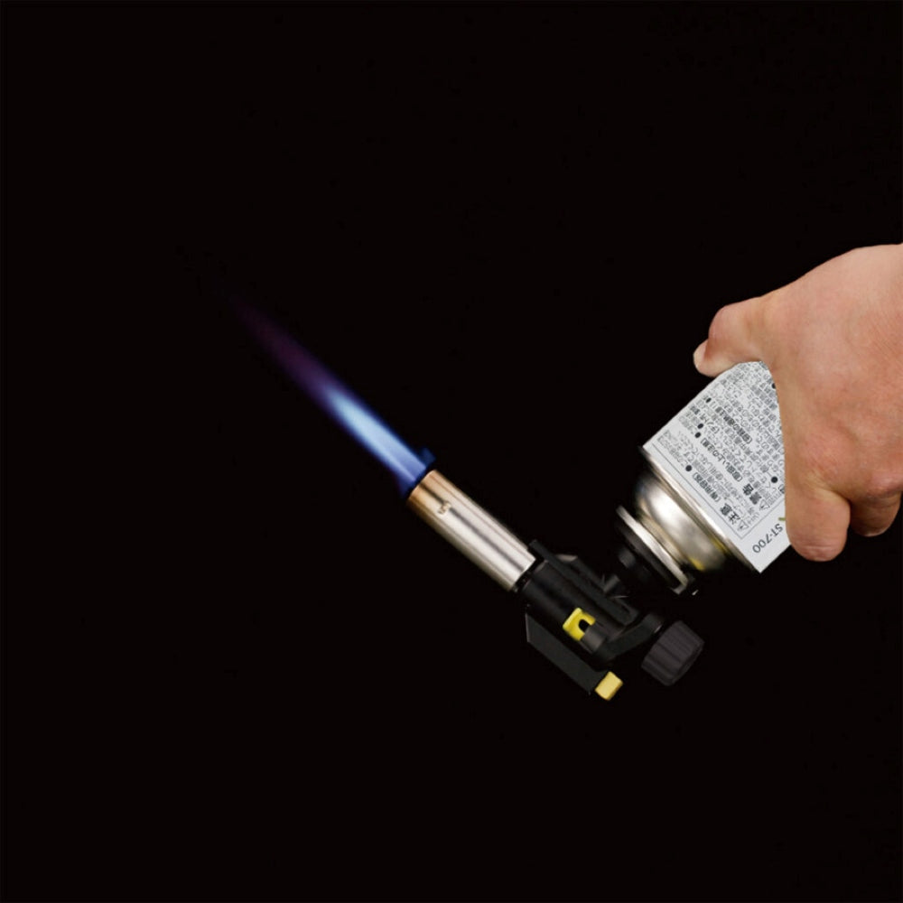 カセットガス式でありながら点火直後に逆さ使用しても生火が出ない。カセットガス式トーチの常識を変える「瞬間気化方式」を採用。点火直後で炎が安定し、女性でも使いやすく安全です。「空気調整機能付」で、1300Cの強力集中炎から900Cのソフトな炎まで用途に応じて調整可能。「あぶり料理」などの「お料理バーナー」として、「炭の火起こし」などの「レジャー用バーナー」としても適しています。フルタイムで逆さ使用が可能となり、点火後すぐにボンベを傾けても、生火が発生せず安全です。※CB缶(カセットボンベ)仕様※専用容器(ボンベ)ST-700 1本付仕様:発熱量/2.1kW(1,820lcal/h)ST-760使用時、1.8kW(1,550kcal/h)ST-700使用時※5分間の連続燃焼データより換算。燃焼時間/約1.5時間(ST-760使用時)、約2.0時間(ST-700使用時)※30分間の燃焼データを1時間に換算、火炎温度/最高1,300C 最低900C