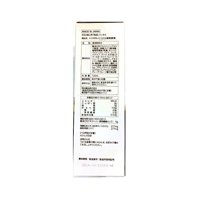 難消化性デキストリン(アメリカ製造)、果糖ぶどう糖液糖、植物発酵物(黒糖、オレンジ、パイナップル、バナナ、リンゴ、パパイア、グァバ、その他(ゴマ・大豆・キウイフルーツ・カシューナッツを含む))、デキストリン、発酵紅茶エキス/酸味料、増粘剤(ペクチン)、香料、カラメル色素、保存料(安息香酸Na、ブチルパラベン)、甘味料(スクラロース、アセスルファムK)、グレープフルーツ種子抽出物