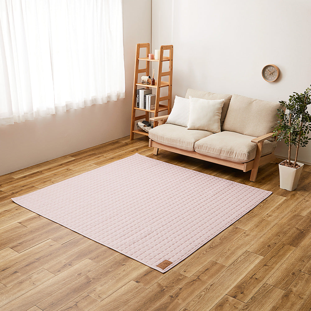 11色から選べるスウェット生地のやわらかラグ。オールシーズン対応で、すべり止めも付いていて、洗濯機で洗える。機能面もバッチリ。霜降りの入り方にこだわりました。
