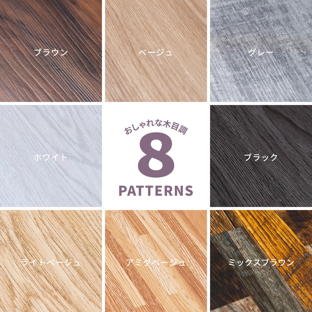 フィルムをはがして何度でもはがせる、木目調フロアタイル。床の上から貼るだけでお部屋をイメージチェンジできます。賃貸や新築の床への汚れや傷の防止にも。カッターで簡単にカットできます。キッチンや洗面所など水周りにも使えて、粘着が落ちても水で洗えば繰り返しご使用いただけます。