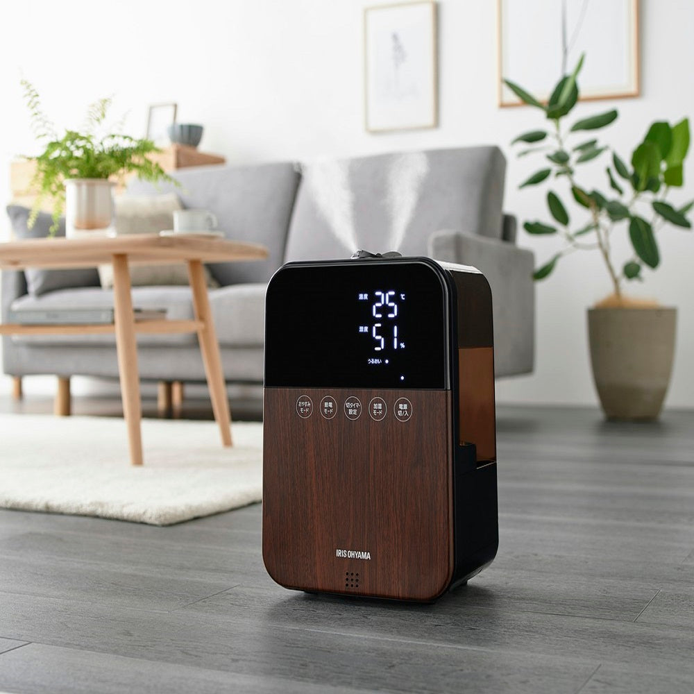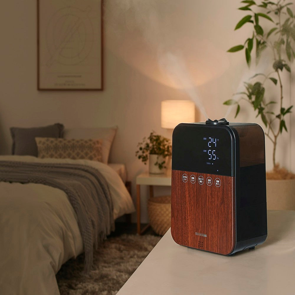 コンパクトでインテリアにもマッチするデザイン性の高いハイブリッド式加湿器です。湿度・温度が見えるデジタル表示。静電のタッチパネルで楽に操作ができます。離れたところから操作ができるリモコン付です。アロマトレーにお好みのアロマオイル(市販)を滴下すると、アロマの香りが広がります。