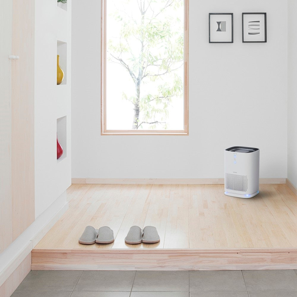 使い勝手の良い小型サイズなので、持ち運びラクラクで場所を選ばず置けます。運転モードは弱・中・強・おやすみの4モード搭載されています。フィルターのお手入れ時期になると、フィルター掃除ボタンが点灯してお知らせします。底面が光るので、おしゃれなインテリアとしてもご使用できます。
