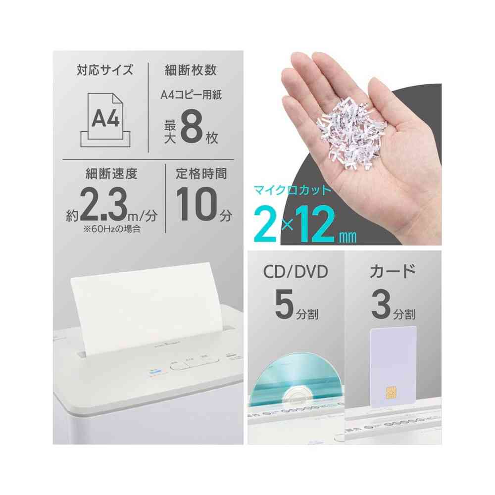 ● A4コピー用紙(64g/m2)を最大8枚まで細断可能