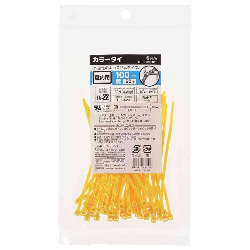 サイズ: サイズ:全長100mm×幅2.5mm 結束径:1.5~22mm