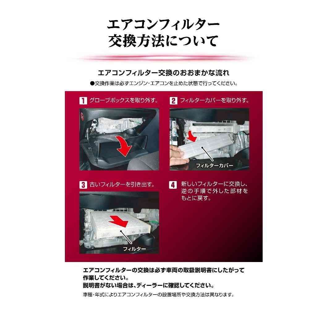 ・本製品はフィルターの交換方法を記載した説明書を同梱していません。交換方法は、車両の取扱説明書で確認してください。