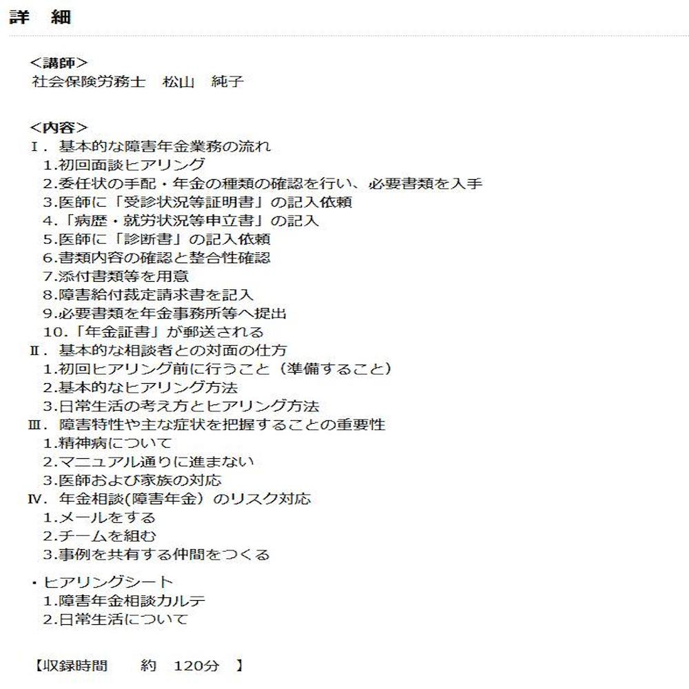 セミナー形式でわかりやすく解説! これから障害年金相談業務に携わる方、経験の少ない方向けに、社会保険労務士の松山先生が実体験をもとに基本的な障害年金業務の手順から相談者との向き合い方、ヒアリング方法、面談の手順を解説しております。また、書類の整合性のチェックポイントや相談を受ける上でのリスク、家族や主治医の対応の仕方がわかる内容です。DVDの収録書式は、障害年金相談業務の現場ですぐに役立つ、書類がセットになっております。