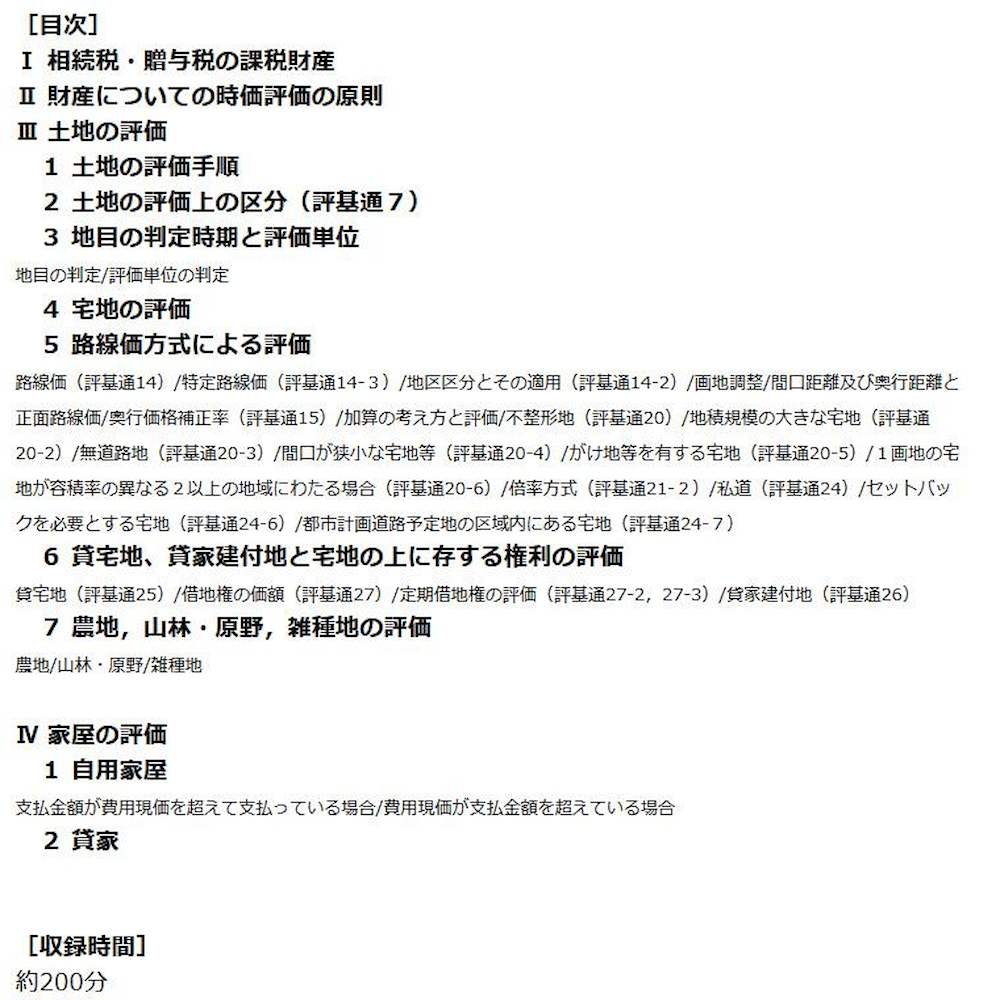 講義映像とテキスト(PDF)をセット! 平成29年9月の財産評価基本通達一部改正により、「広大地の評価(財産評価基本通達24-4)」は廃止され代わりに「地積規模の大きな宅地の評価(財産評価基本通達20-2)」が新設されました。本商品は、今回の改正点はもちろんのこと、相続税・贈与税の相談や実務で重要な土地の評価の仕方について、基礎知識から実務に役立つ応用まで図表や事例を用いて詳しく解説をしています。