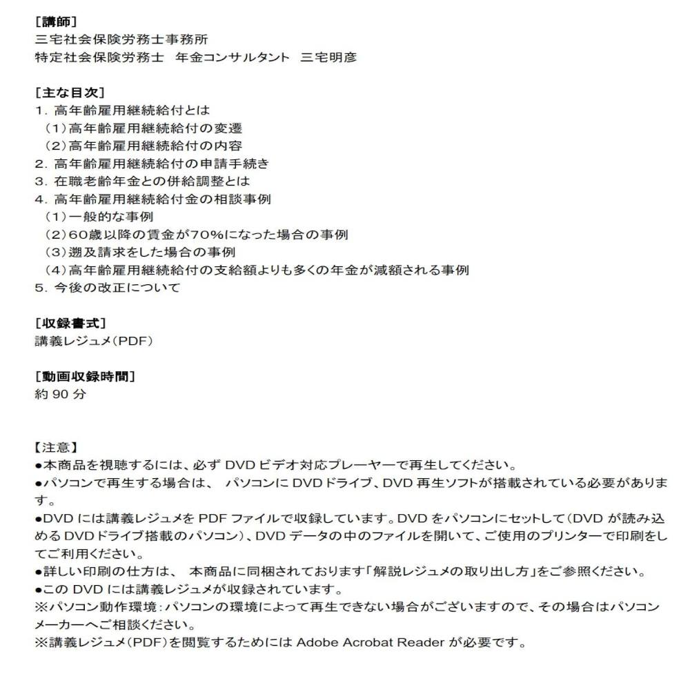 DVD 必ず知っておきたい 高年齢雇用継続給付の基本と実務上の注意点 V161