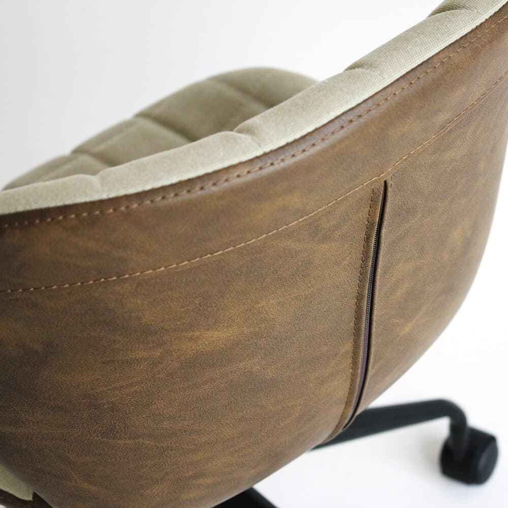 レザー風生地とファブリック生地の組み合わせが絶妙なデスクチェアーです。