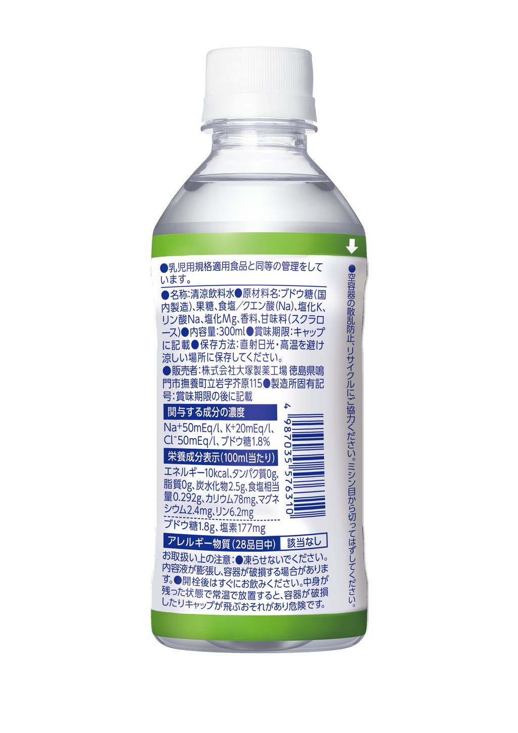 ブドウ糖(国内製造)、果糖、食塩/クエン酸(Na)、塩化K、リン酸Na、塩化Mg、香料、甘味料(スクラロース)