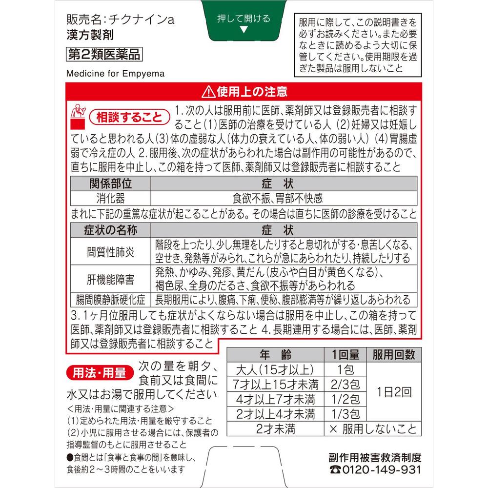 2.服用後、次の症状があらわれた場合は副作用の可能性があるので、直ちに服用を中止し、製品の添付文書を持って医師、薬剤師または登録販売者に相談すること