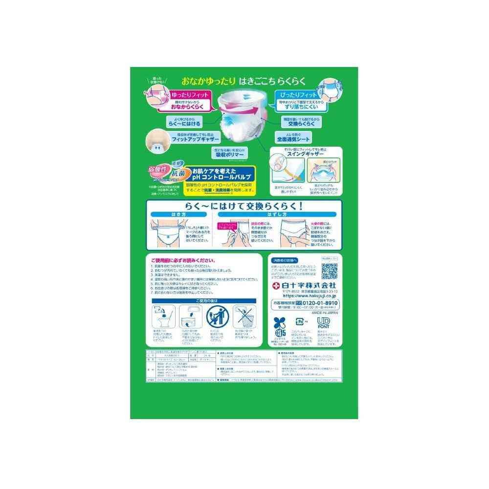 やさしく包むらくらく設計—おなかとお尻はゆったりさせ、モレにつながりやすい下腹部とウエスト部をしっかりフィットさせる構造を採用。
