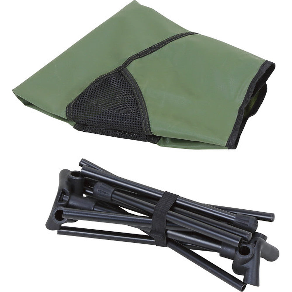 ●座面高=約36cm●耐荷重=約80kg<メーカー調べ>●収納袋付●商品サイズ:現品約57×53×61cm、収納時=約36×12×12cm・本体重量=約1.3kg●商品材料:ポリエステル、スチールパイプ
