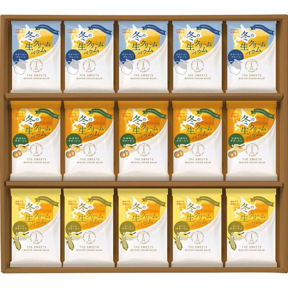 商品内容:●バウムクーヘン(コーンポタージュ・かぼちゃポタージュ・クリーミープレーン×各5)