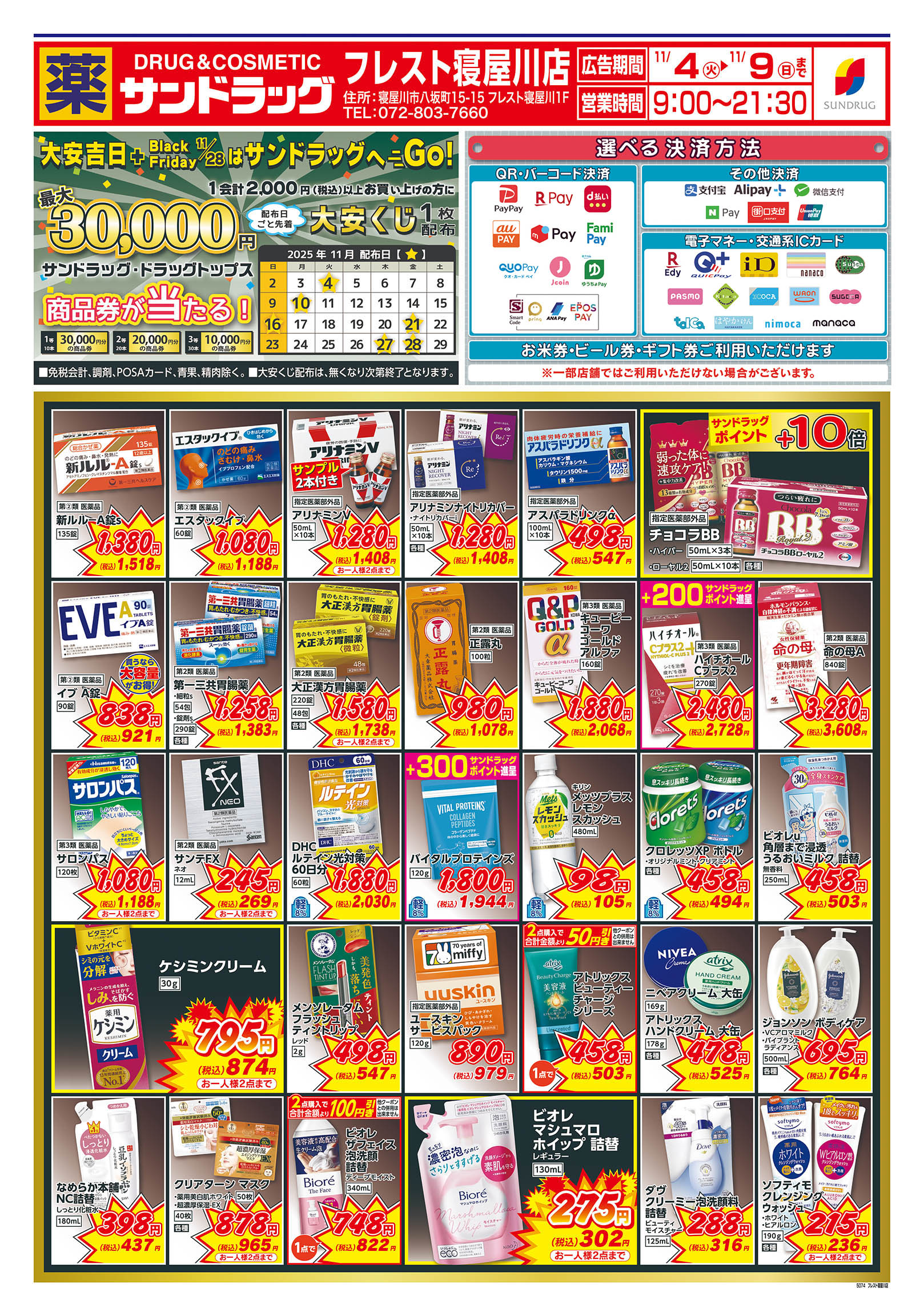 ・閉店前は店頭商品を店内に収納する為、通路が狭くなる場合がございます。
