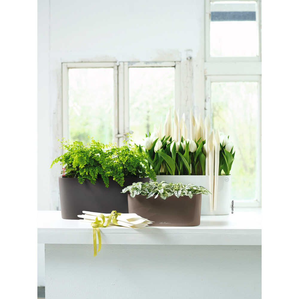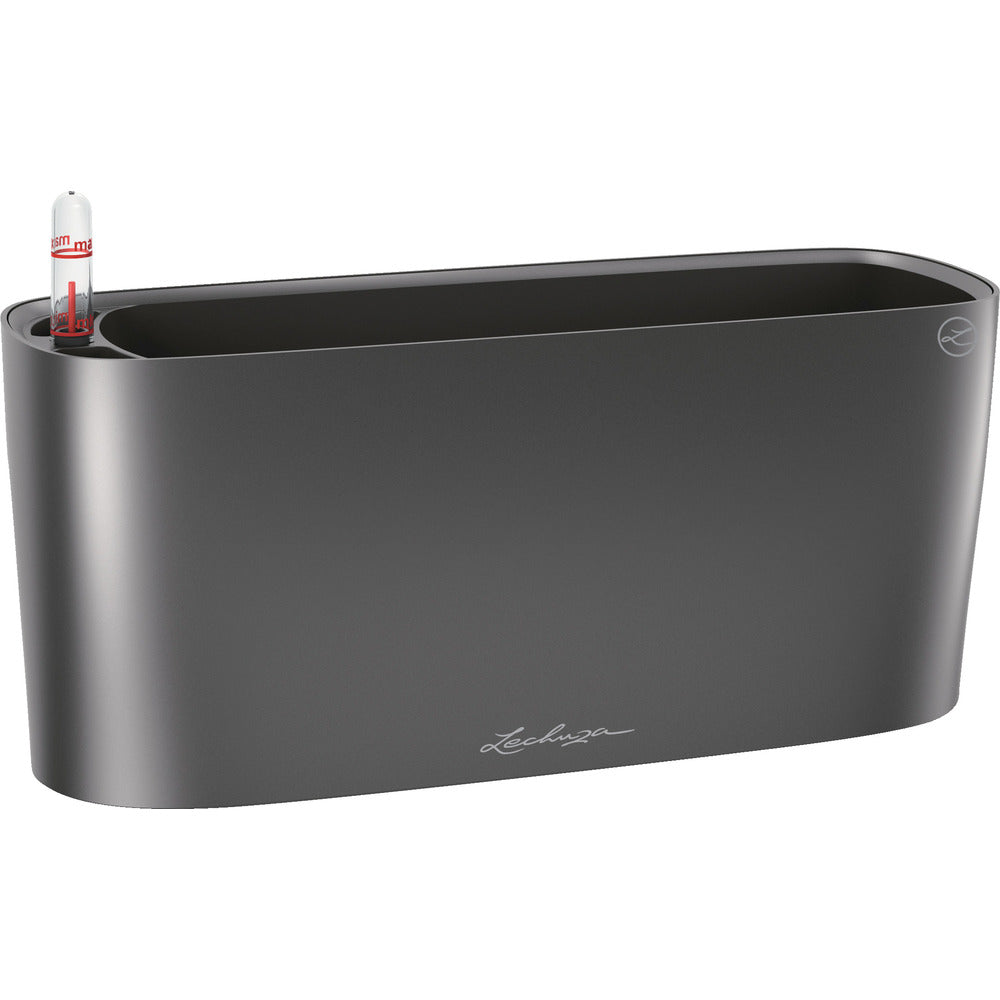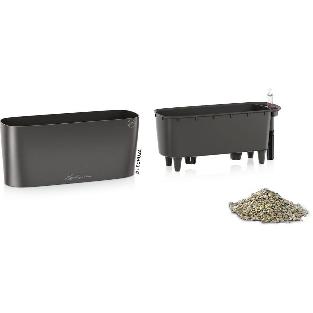 ●植物が底面から適度に吸水できる構造で根腐れが起こりにくいです。●貯水スペースがあり休暇中の植物管理も簡単です。●付属の緩効性肥料がゆっくりと植物に栄養を与えてくれます。●内側のライナーは取り外し可能で植物の入れ替えが簡単です。●水位計付きで水量が一目で確認できます。●リサイクル素材を使い環境に優しいです。●紫外線に強く丈夫なので窓際などにも設置可能です。●優れたデザインで観葉植物に最適です。●幅(mm):400●奥行(mm):150●高さ(mm):180●土の容量(L):5●色:チャコール●内寸(mm):340×125●水容量(L):2 質量2.07kg