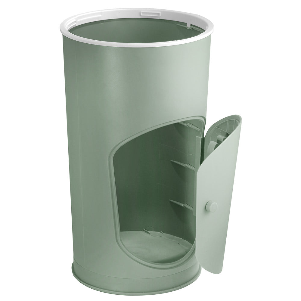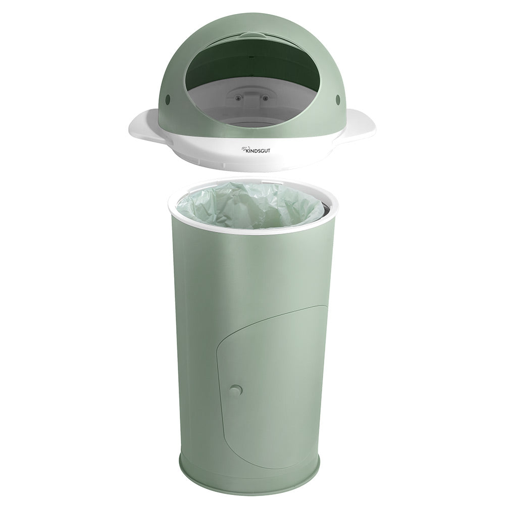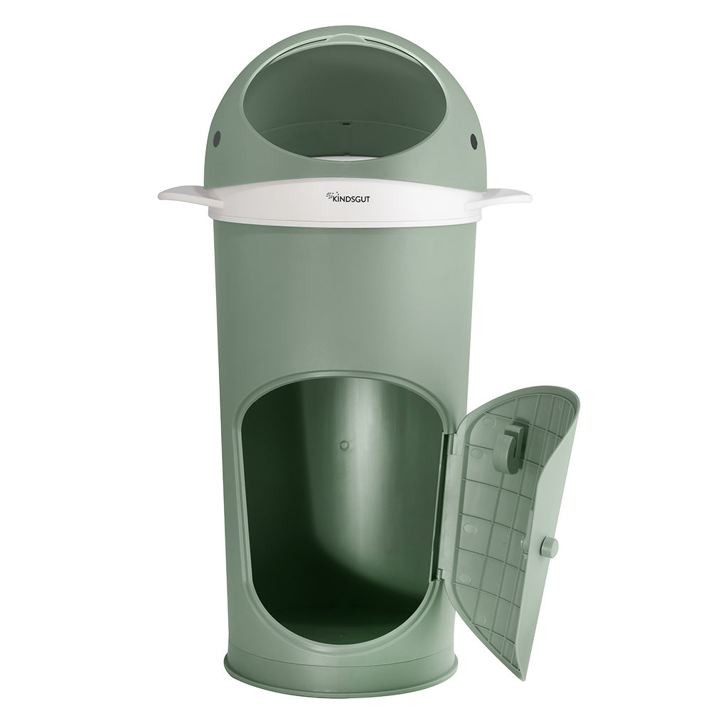 安全なスタンド・二重フラップ・袋交換も簡単。1回で約25~30個分のおむつが入ります。