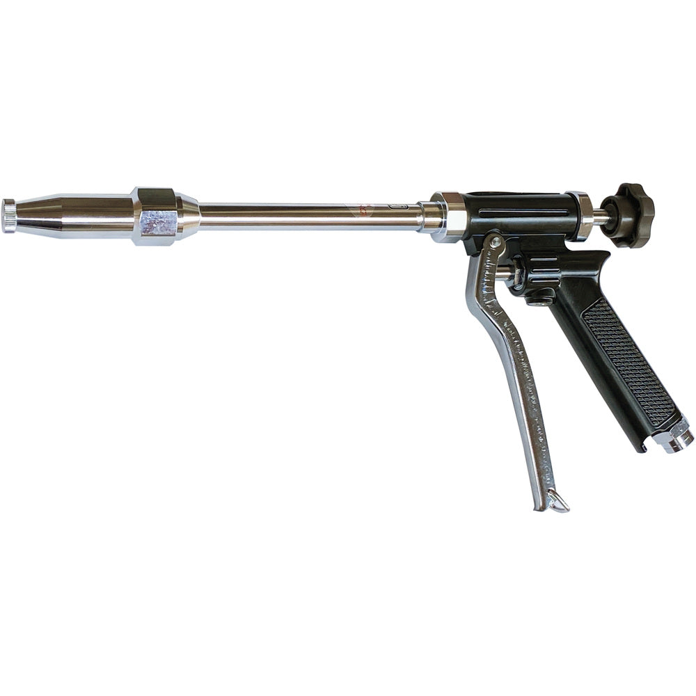 ●ピストルタイプで最も到達性に優れ、高木防除・洗浄に最適なノズルです。●ストップ機能付 噴射パターン:直射/円錐●ノズル長(mm):345●圧力(MPa):3.0●タイプ:動力性能:孔径2.5 圧力2.0MPa時 水量5.4~15.6(L/min)到達距離 5.5~12.0m 取付ネジ G1/4 質量535g