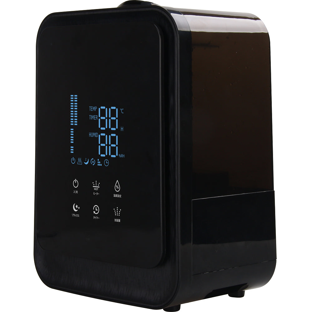 超音波と加熱式のハイブリッドタイプ。●連続加湿時間約16時間(最大運転時)。●OFFタイマー付き(最大12時間)。●湿度設定運転機能付き。●最大加湿量280ml/h。●タンク容量約4.5L(抗菌カートリッジ装着時4.2L)