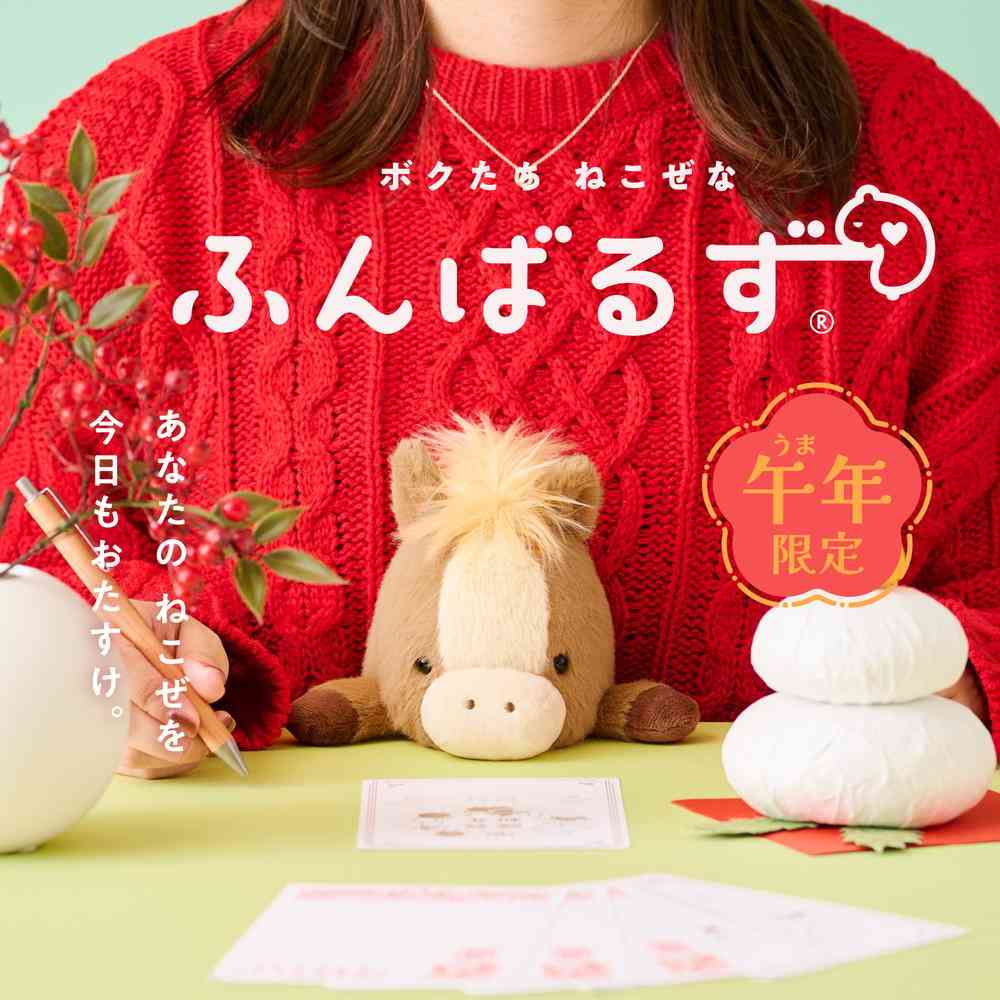 大人気の「猫背」なあなたを支えるぬいぐるみ「ふんばるず」に、2026年の干支である「ウマ」が新たにラインナップ。