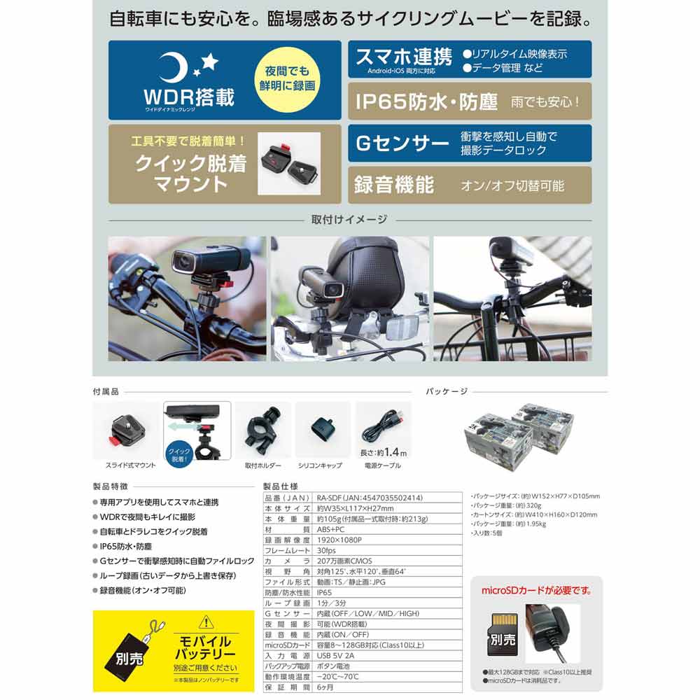 サイクルドライブレコーダー FHD RA-SDF メーカー直送▼返品・キャンセル不可【他商品との同時購入不可】