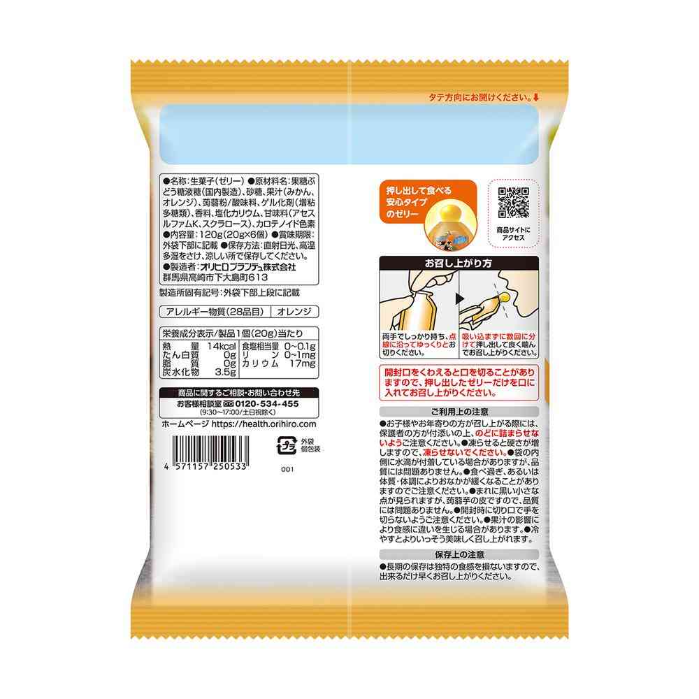 果糖ぶどう糖液糖(国内製造)、砂糖、果汁(みかん、オレンジ)、蒟蒻粉/酸味料、ゲル化剤(増粘多糖類)、香料、塩化カリウム、甘味料(アセスルファムK、スクラロース)、カロテノイド色素