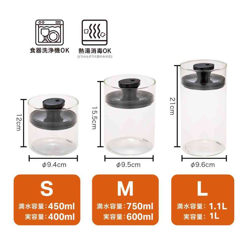 場所をとらずに食材をたっぷり保存可能、ガラス製で残量もわかりやすくなっています。