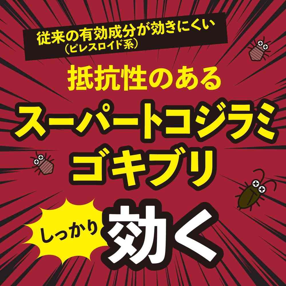 ●抵抗性ゴキブリ・スーパートコジラミ(※従来の殺虫成分「ピレスロイド系」に抵抗性を持ったトコジラミのこと。)にしっかり効く。
