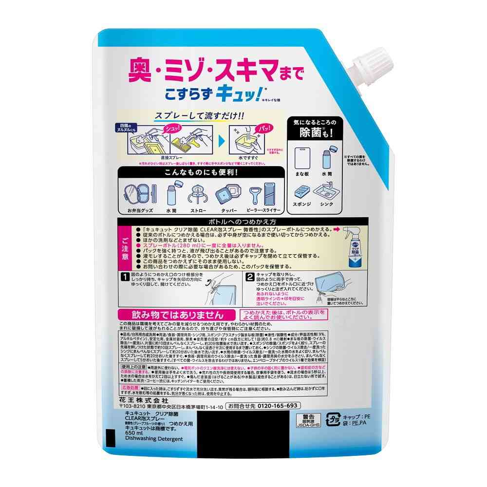 ● 「キュキュット クリア除菌 CLEAR泡スプレー 微香性」のスプレーボトルにつめかえる。