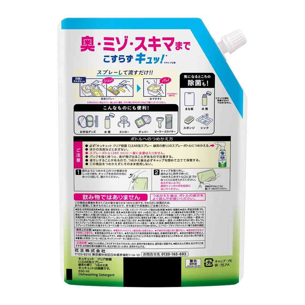●必ず「キュキュット クリア除菌 CLEAR泡スプレー 緑茶の香り」のスプレーボトルにつめかえる。