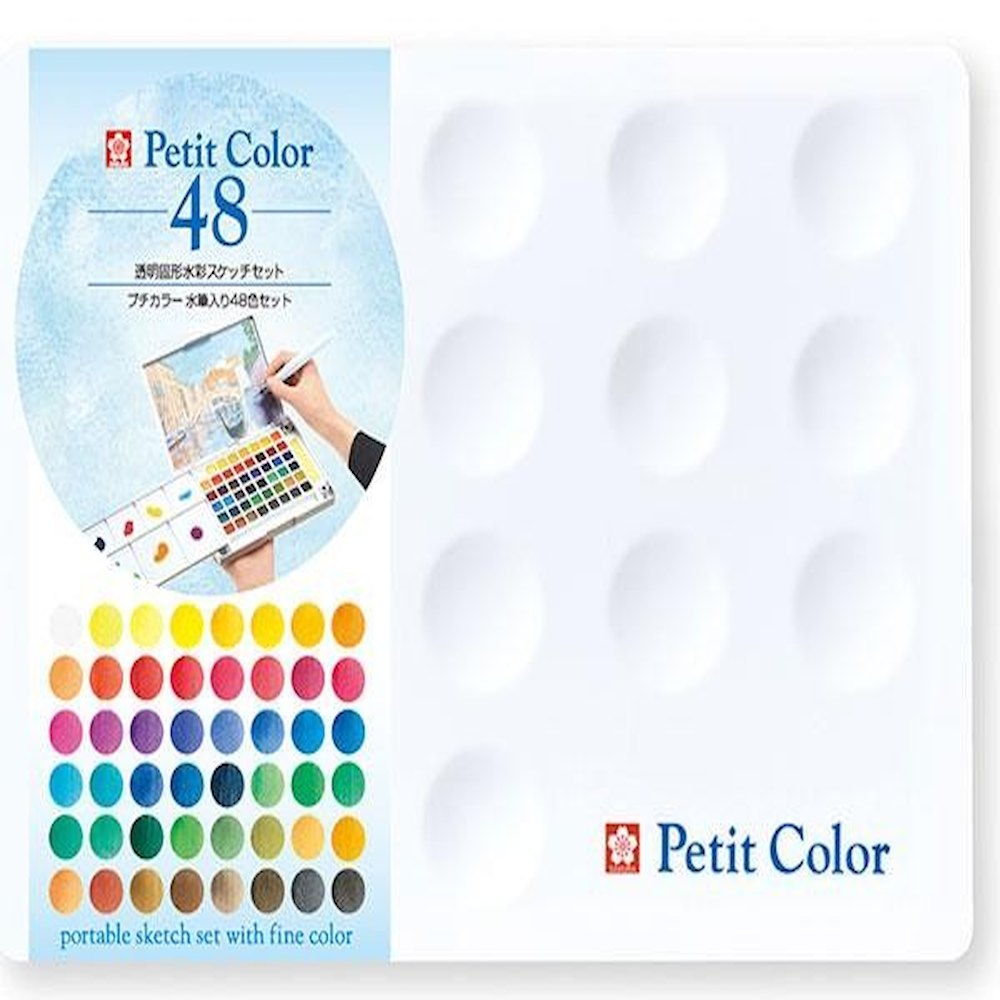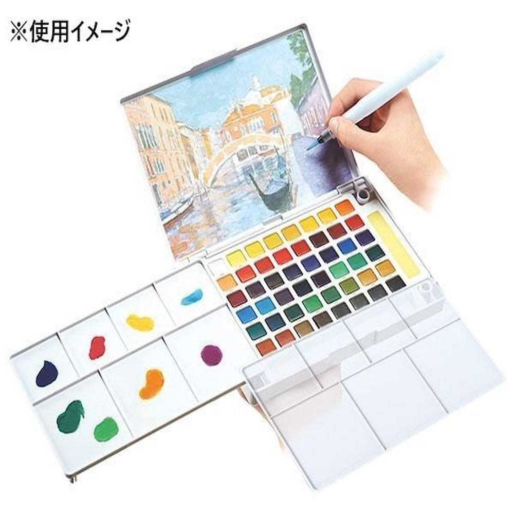 発色に優れた固形水彩絵具に筆やパレットがセットになりました♪ コンパクトなスケッチセットシリーズに、48色入りが登場。イーゼル、パレット、水筆などスケッチに必要なアイテムがすべて入っています!