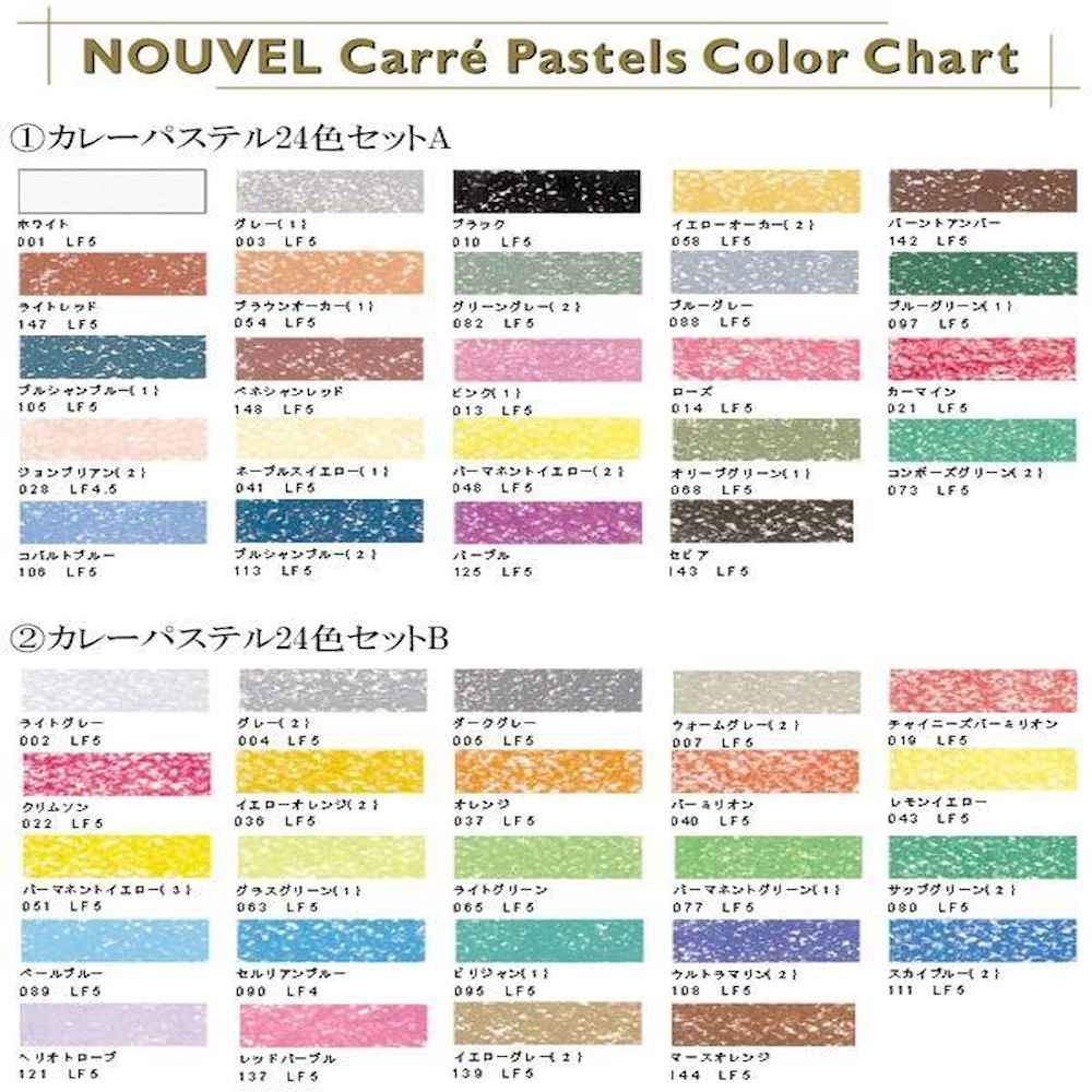 NOUVEL CARRE PASTEL ヌーベルカレーパステル 96色セット紙箱入 NCT-96 コンテの持味にパステルの長所を加えた色彩材料 従来のコンテほど固い感じではなく、パステルのなめらかさやソフトでシックなタッチ・軽やかさを持っています。粒子の細かさ・のびの良さが特徴で、重色・混色がよくきくので技法の広さが得られます。角を使っての線描き、面を使っての面描き等に便利な角型です。