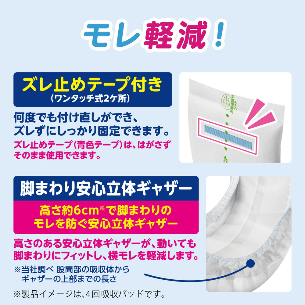 ・脚まわりからのモレを防ぐ「安心立体ギャザー」。