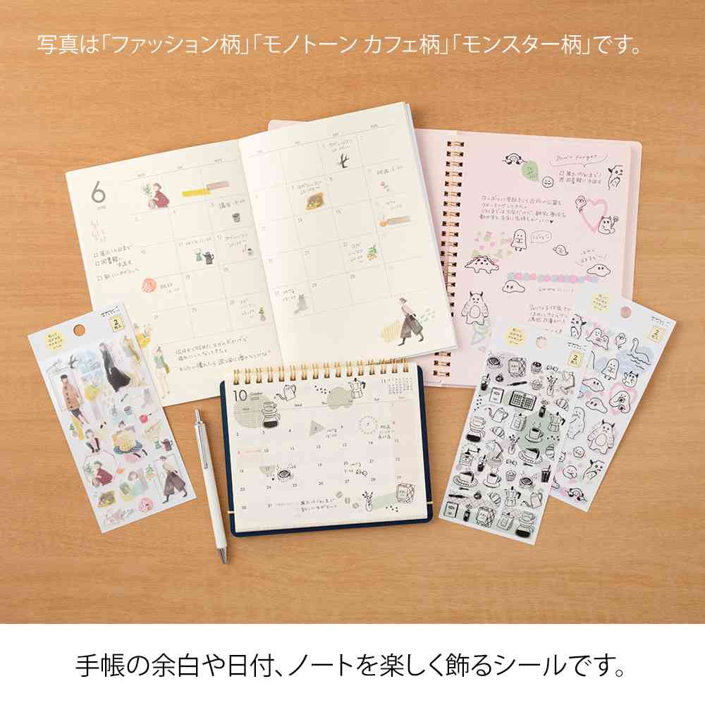 手帳に限らず、ライフログやノートのデコレーションにも使いやすい大きめのモチーフも入っています。