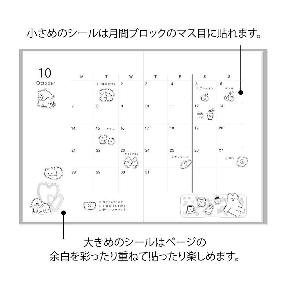 手帳に限らず、ライフログやノートのデコレーションにも使いやすい大きめのモチーフも入っています。