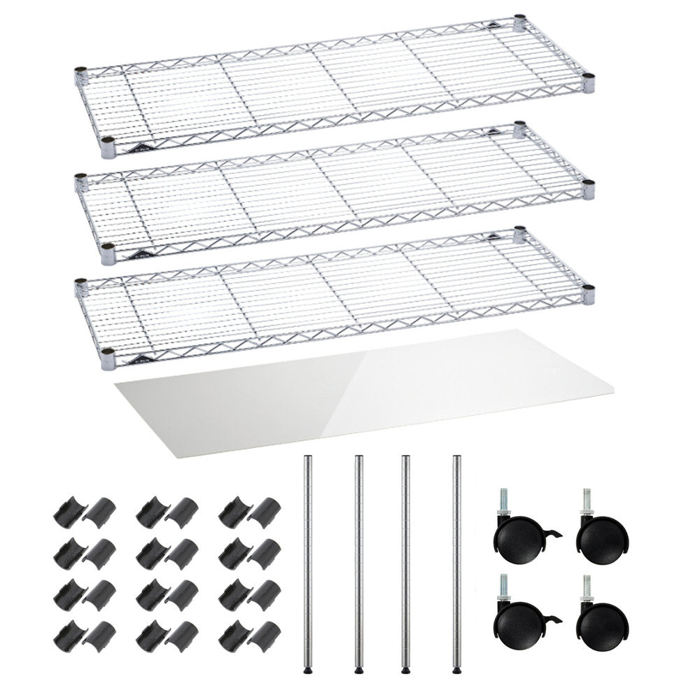プリンタやスキャナ、ファイル収納にも使える万能ラック。シンプルなデザインが特徴です。机横の書類整理だけでなくプリンター収納、机の作業時の補助にもなります。オールインワンのセット商品。【仕様】総耐荷重:4個使用時/140kg●機能:キャスターストッパー機能(2個)●セット内容/ワイヤーシェルフ:3枚、ポスト:650mm(4本)、キャスターストッパー付き:2個、キャスター:2個、アクリル板(クリア2mm厚):1枚●キャスターを使用した場合の最大外寸/間口・奥行寸法に86mmを足した寸法になります。