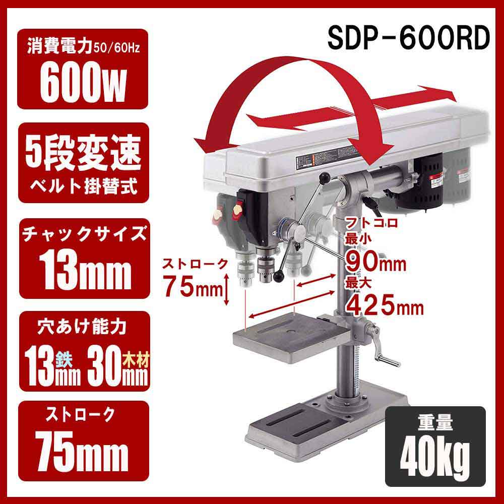 強力600Wモーター採用で、鉄工13mm、木工30mmも簡単に穴あけできます。
