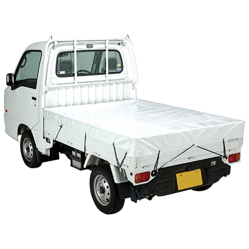 前方からの雨水侵入を防ぐ前垂れ付き軽トラックシートです。