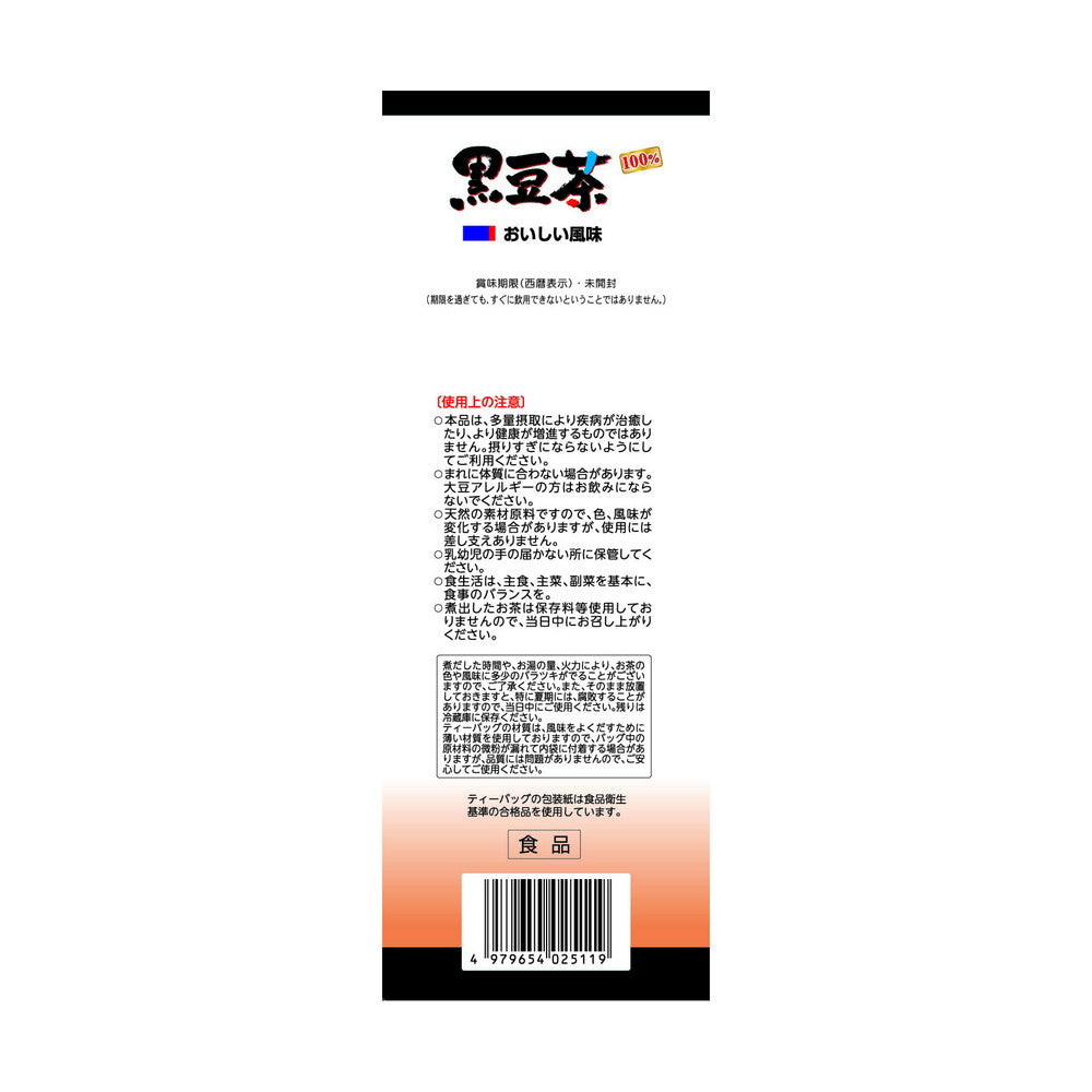 ●黒豆を焙煎し、手軽にお飲み頂けるティーバッグ包装にした100%黒豆茶です。黒豆のまろやかな風味が味わえる、美味しいお茶です。ホットでもアイスでも、美味しくお飲み頂けます。
