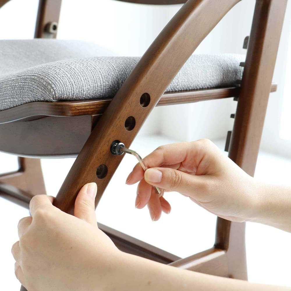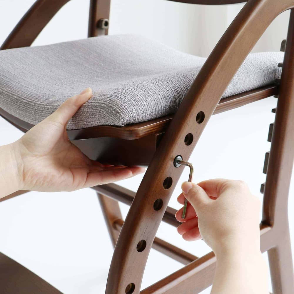 7段階の高さ調整ができて 正しい姿勢を保てるダイニング学習椅子です。