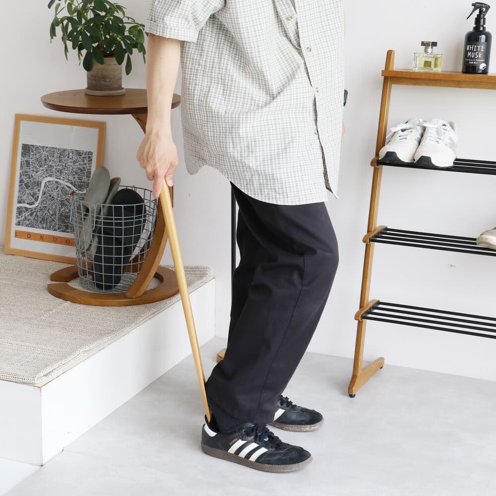 プラスチック製の靴べらのようにしならせての使用や、 金属製の靴べらのようにかかとを乗せて  体重をかけて使用しないでください。その他、無理な力を加えたり本来の用途以外で使用しないでください。 変形・破損・塗装はがれの原因となることがあります。 土台には付属の靴べら以外はかけないでください。