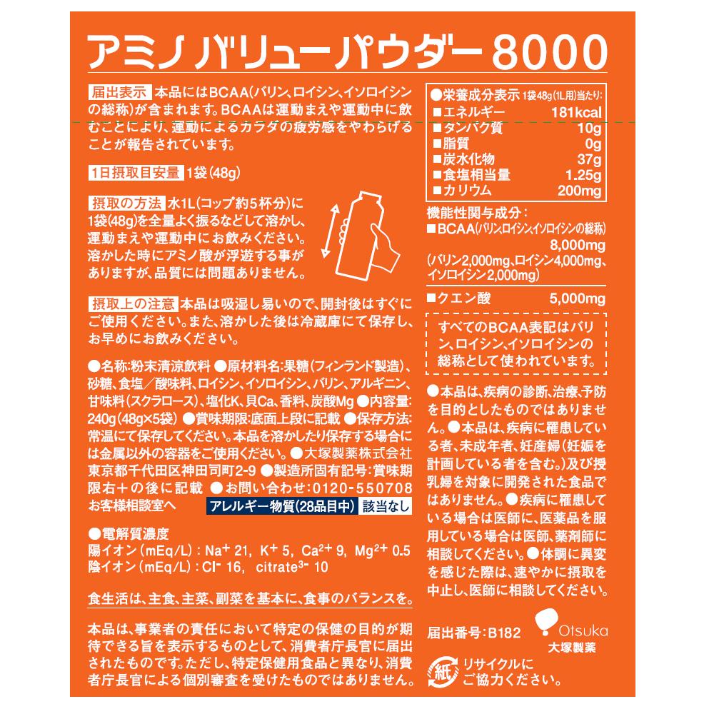 BCAA(バリン、ロイシン、イソロイシンの総称)8,000mg