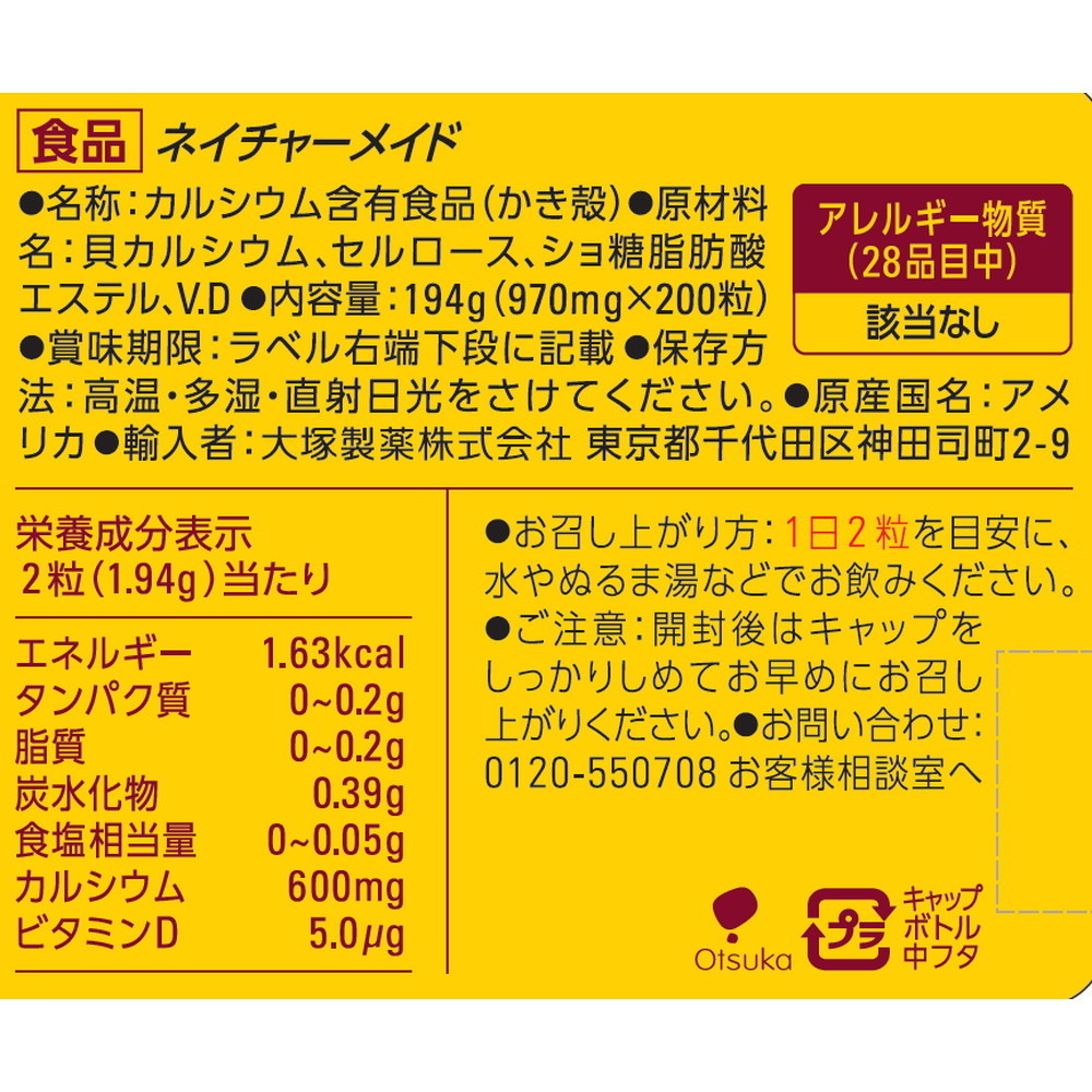 貝カルシウム、セルロース、ショ糖脂肪酸エステル、ビタミンD