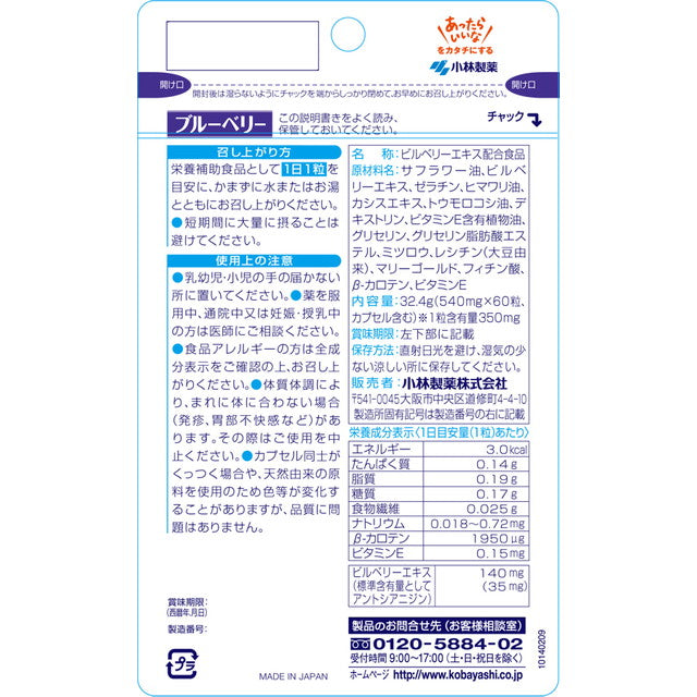 ◆小林製薬 ブルーベリー(お徳用) 60粒