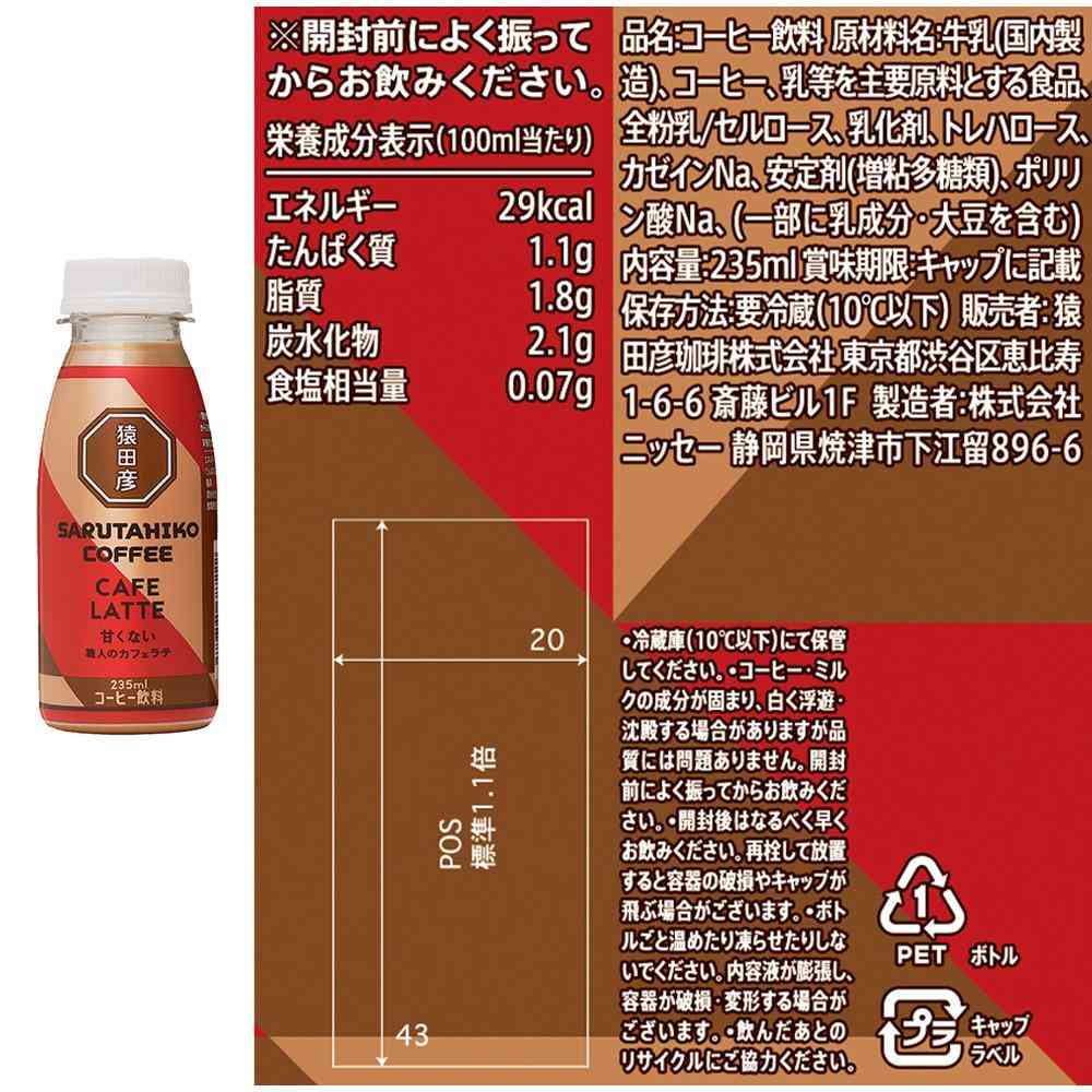 [冷蔵] 猿田彦珈琲 キリッとBLACK ブラックコーヒー(無糖)235ml/[冷蔵] 猿田彦珈琲 職人のカフェラテ(甘くない) 235ml/[冷蔵] 猿田彦珈琲 真心SWEETカフェラテ(加糖)235mlを各種4本ずつ計12本詰め合わせております。